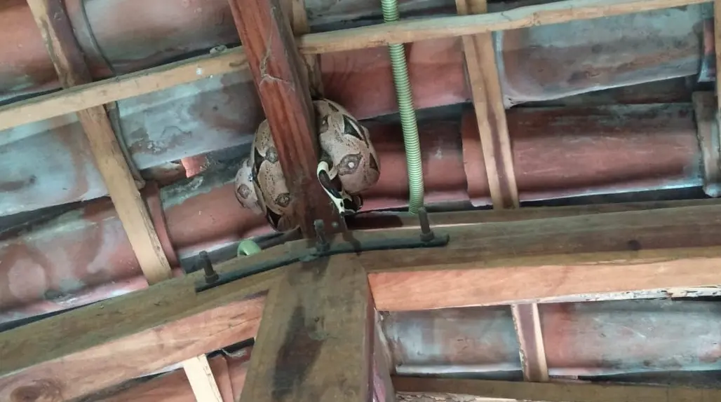 Bombeiros capturam jiboia em telhado de oficina mecânica em Icó
