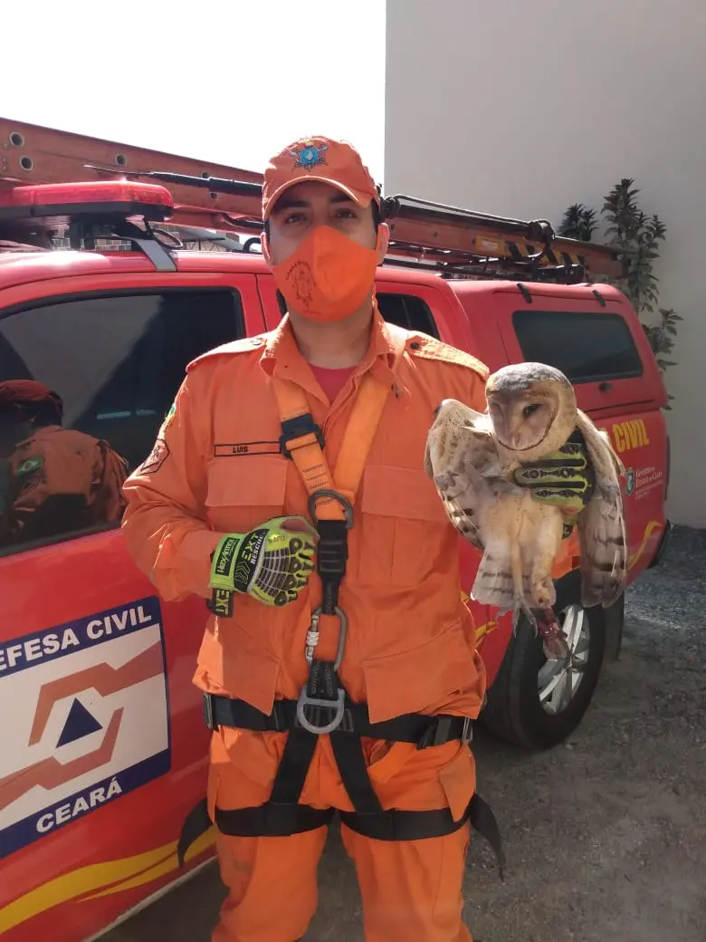 Agentes da 1ª Companhia do 3º Batalhão de Bombeiro Militar resgataram, na manhã desta terça-feira (1º), uma coruja que estava ferida e ficou presa no telhado de um prédio na rua Coronel Monte Alverne, no bairro Derby Clube, em Sobral.