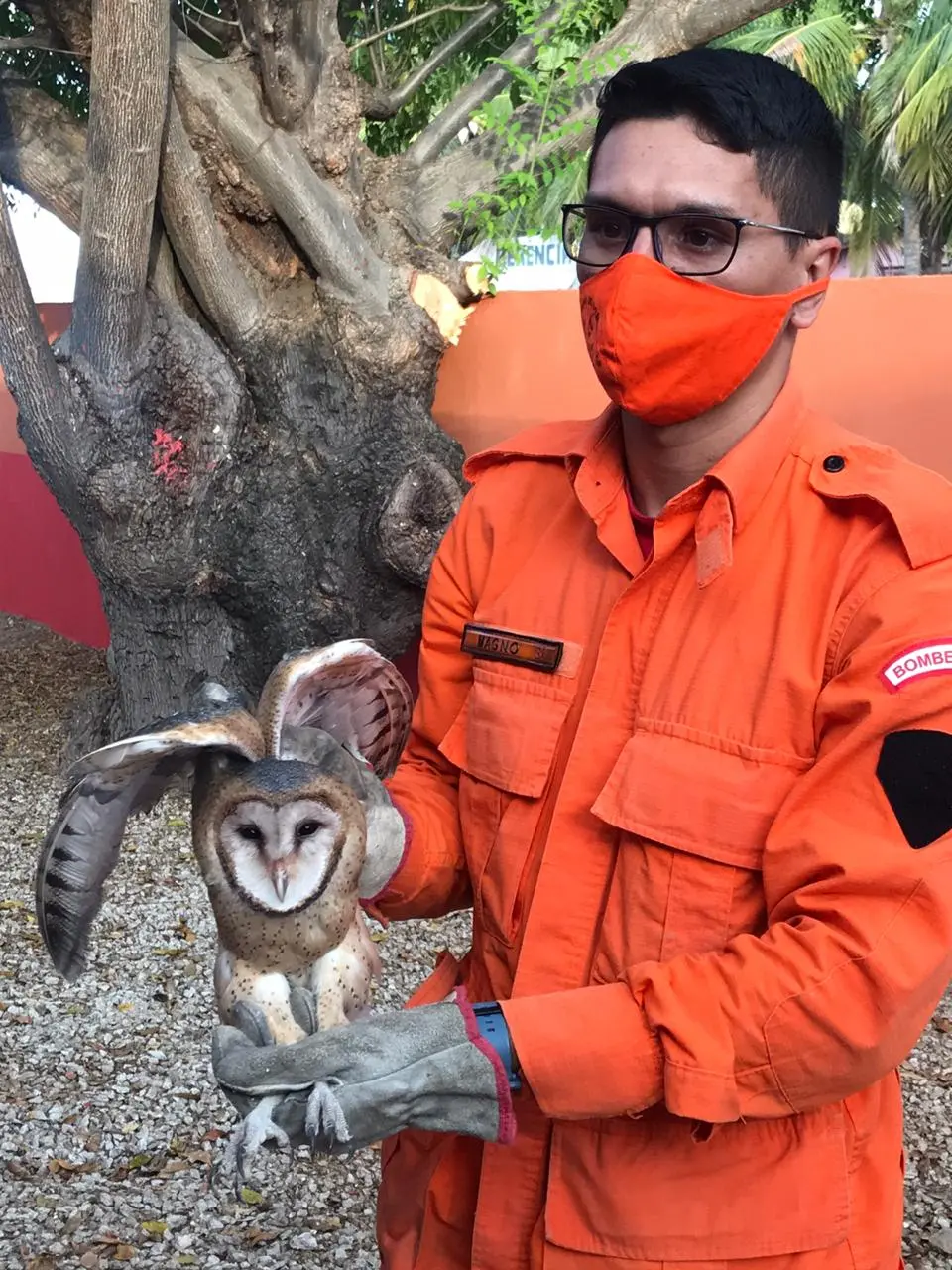 O Corpo de Bombeiros resgatou duas corujas que estavam dentro de uma residência no município de Crateús, no interior do Ceará. O resgate aconteceu na tarde desta terça-feira (8), após os agentes serem acionados pelo proprietário do imóvel, que alegou que as aves estavam impedindo a locação do local.