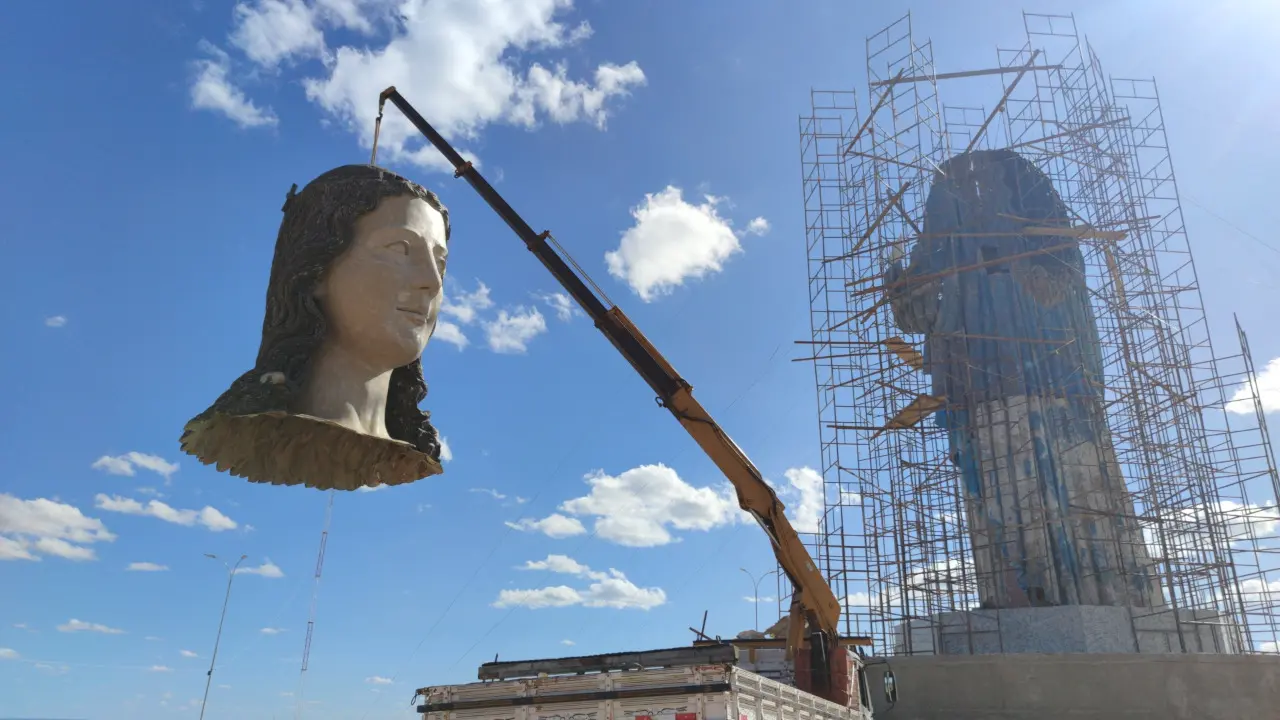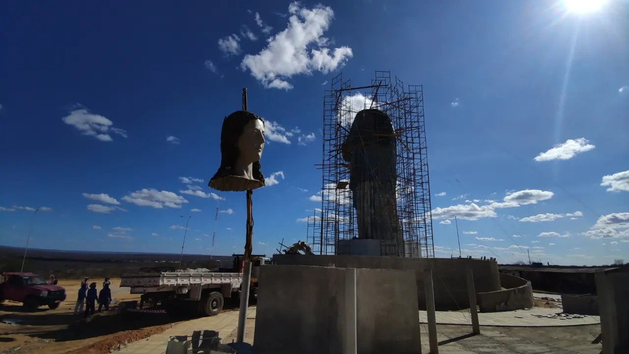 A construção do Mirante de Nossa Senhora da Penha, em Campos Sales, chegou a mais uma etapa importante. Nesta terça-feira (18) começa a ser instalada a cabeça da estátua da padroeira do Município, que se tornará o quarto maior monumento religioso do estado do Ceará. A peça foi esculpida em Saboeiro, a pouco mais de 100 quilômetros do local onde está sendo seguida.