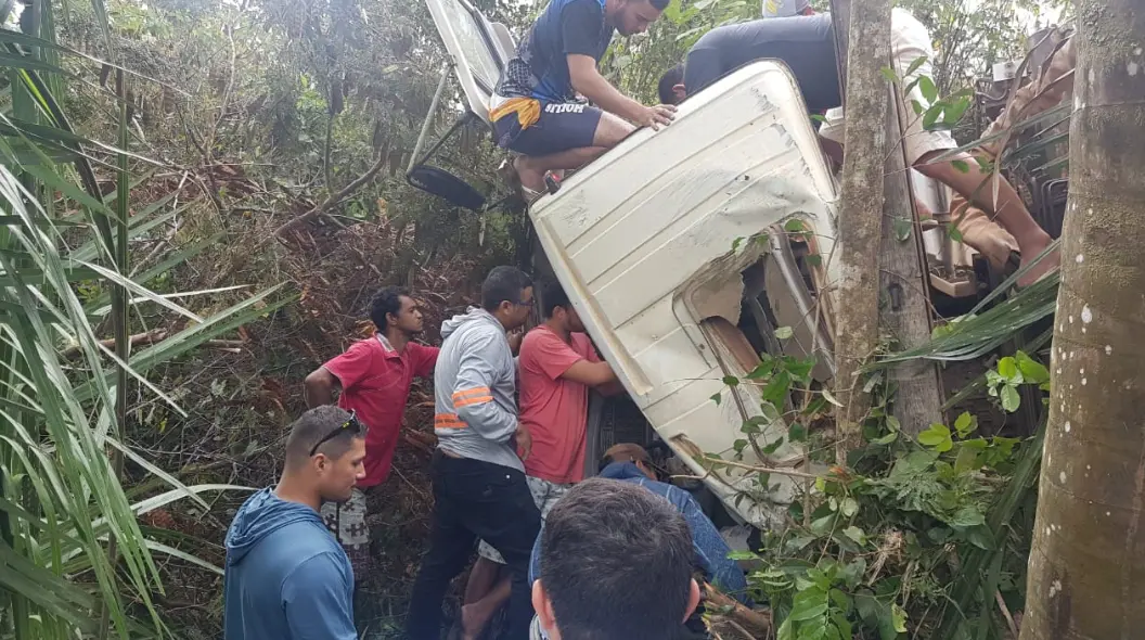 Caminhão perde os freios e cai em ribanceira entre Guaraciaba do Norte e Reriutaba