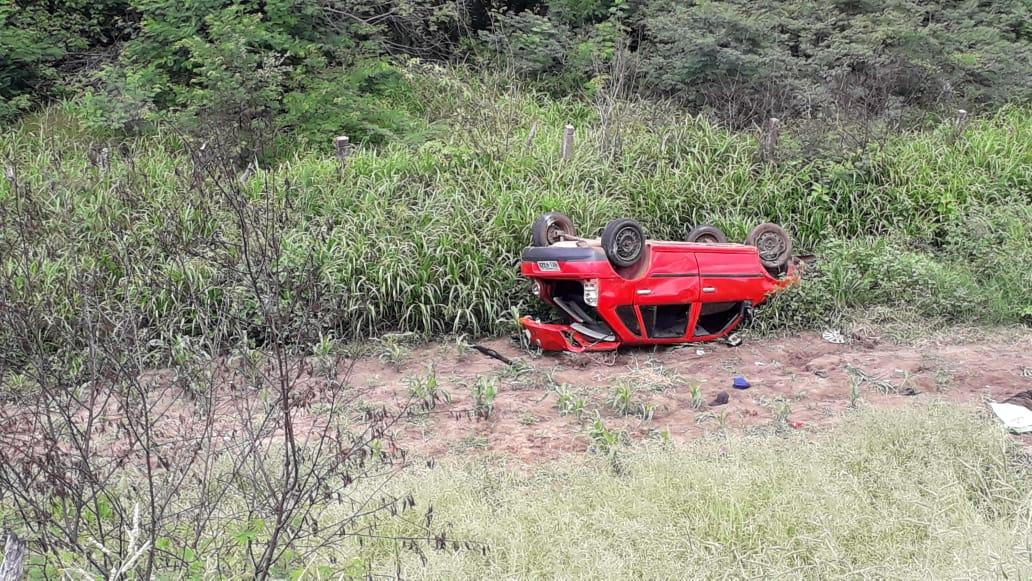 Uma pessoa morre e três ficam feridas após carro capotar em rodovia de Milagres.