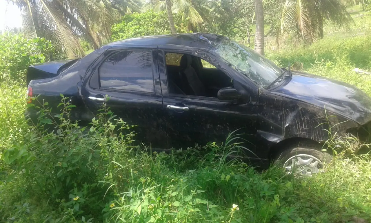 Um motorista desviou de buracos na CE-085, em Itarema, e desceu uma ribanceira em uma propriedade particular da Comunidade de Córrego Grande por volta do meio-dia deste domingo (19).