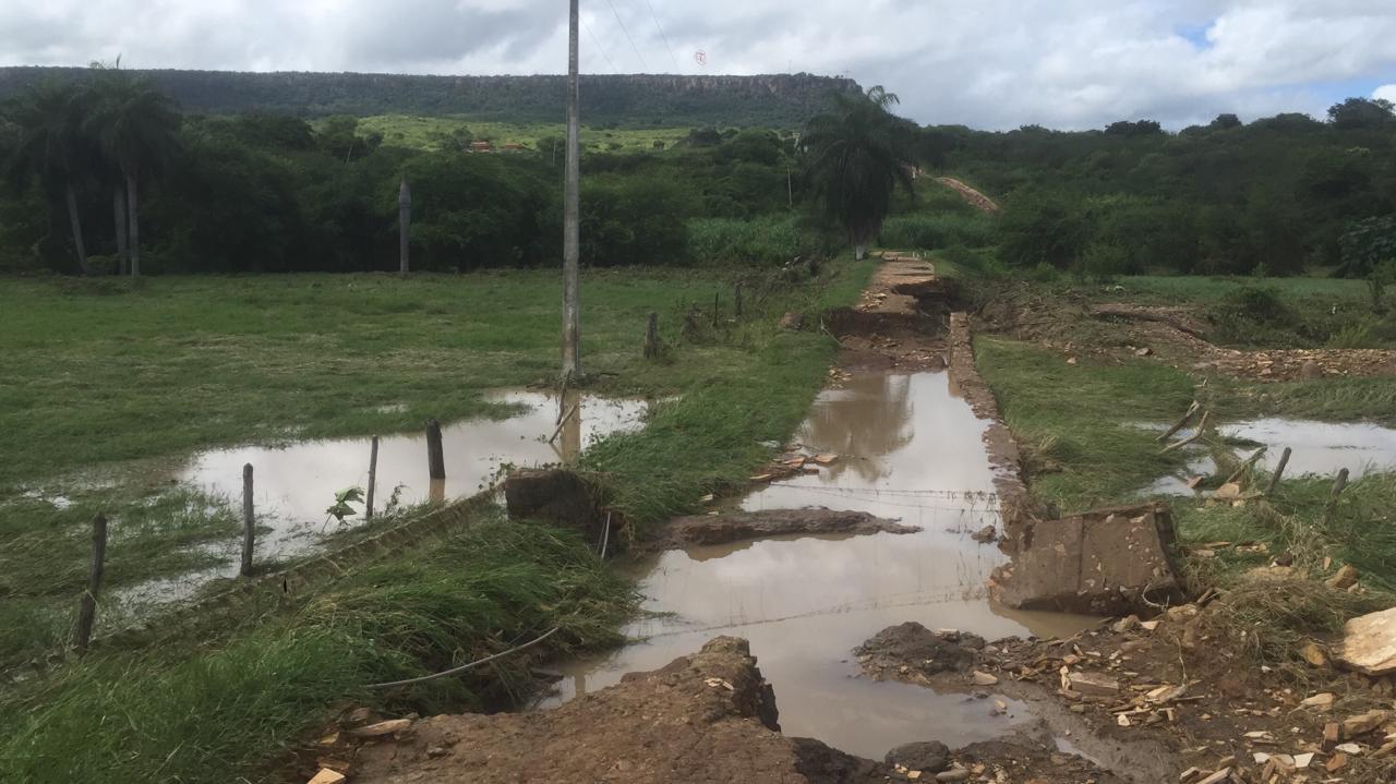 Chuva de 160 mm em Santana do Cariri deixa estrada destruída