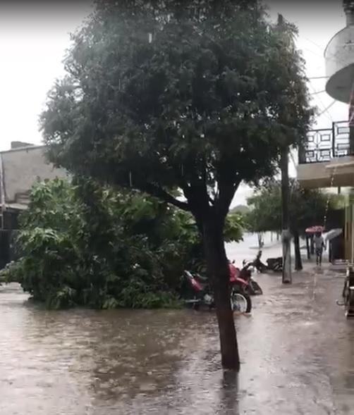 Chuva rápida com vento alaga ruas e derruba árvores no Centro de Ipueiras