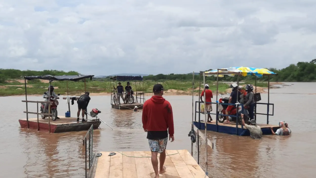 Quem mora nas áreas ribeirinhas do Rio Jaguaribe agora precisa fazer a travessia de canoa e de balsas porque o volume de água não permite mais a passagem de veículos.
