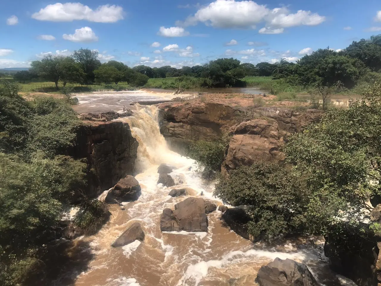 As chuvas da última semana mudaram a paisagem da Cachoeira de Missão Velha, no município homônimo, um dos cartões-postais da região do Cariri. A confluência das águas que formam o Rio Salgado compõe três quedas d’água de aproximadamente 12 metros de altura. O recurso hídrico contribui com o aporte do açude Castanhão, que abastece a Região Metropolitana de Fortaleza (RMF).