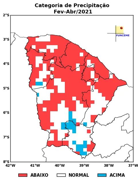 A pré-estação (dezembro de 2020 e janeiro de 2021), apesar de não ter correlação com a quadra chuvosa devido aos sistemas — ou fenômenos — indutores de chuvas serem distintos, fechou com 52% abaixo da média histórica para este período. No acumulado dos dois meses a Funceme anotou 61,6 milímetros, enquanto a média histórica é de 130,3 milímetros.