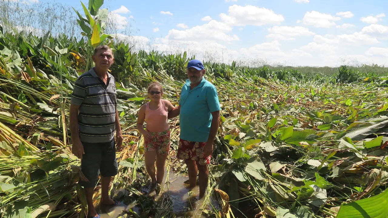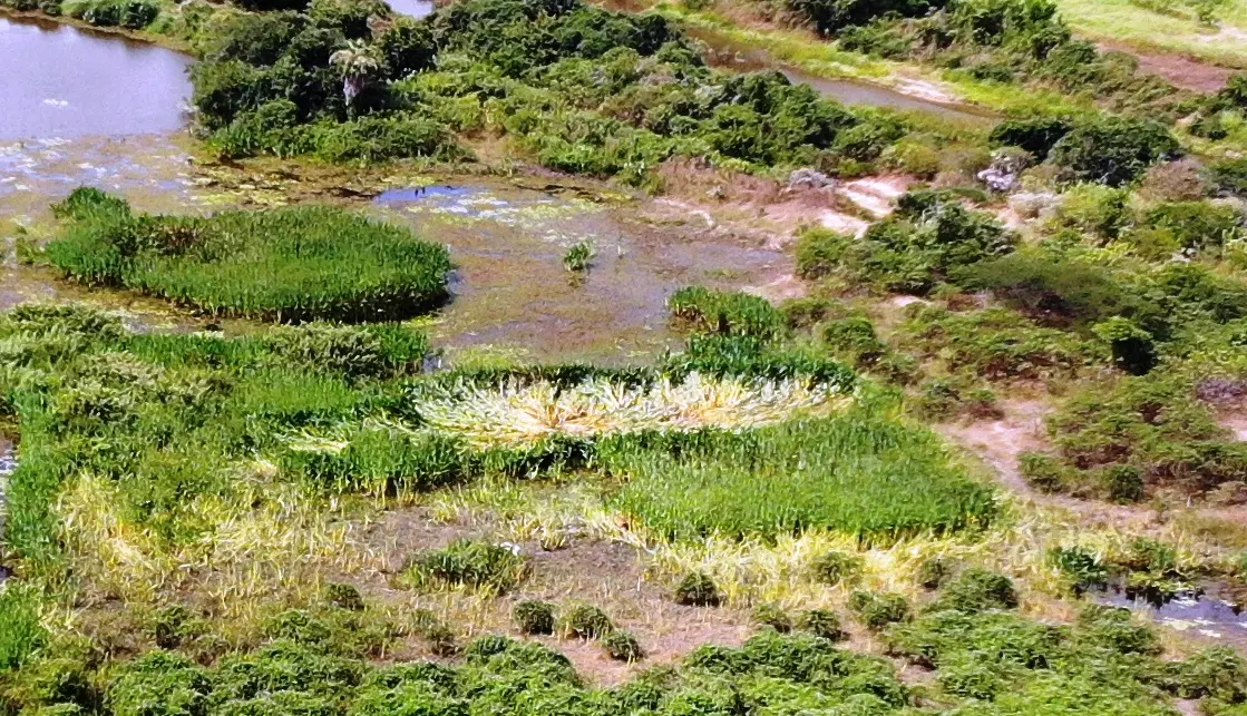 No dia seguinte os dois foram ao local onde teria aparecido a luz azul e se surpreenderam quando se depararam com a vegetação de pacavira - uma espécie de planta que nasce em regiões alagadas-, amassada, em uma lagoa, formando um círculo. "Eu vim olhar o que era aquilo porque aqui é lagoa e não tem luz dentro da água. Aí vi esse amassado como se tivesse baixado um helicóptero. Fiquei impressionado. Na hora que vi isso fiquei morrendo de medo, todo arrepiado", diz Francisco Alberto.