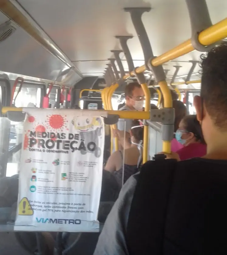 Vídeos e fotos, enviados por um passageiro que pediu para não ser identificado, mostra o coletivo lotado por volta das 13h40, fazendo a rota entre Juazeiro do Norte e Crato. “Isso geralmente acontece a tarde. Muita gente trabalha ou vai resolver algo em Juazeiro e na volta é sempre assim”, denunciou.