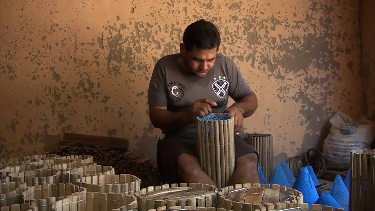 Confecção de armadilhas para capturar camarão gera trabalho e renda para artesãos no Interior do CE