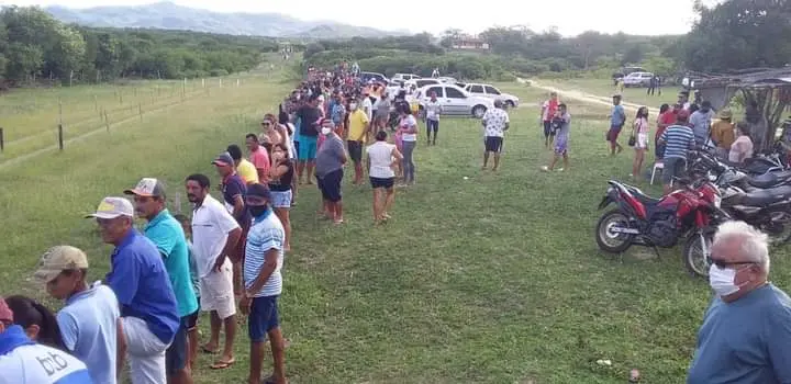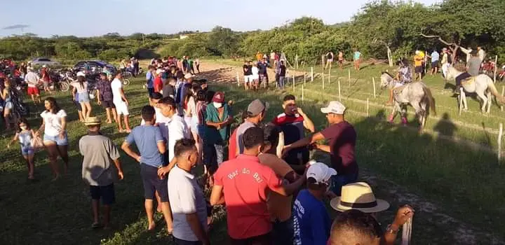 Na tarde do último domingo (25), no Assentamento Choro, distante apenas 3km do centro urbano, foi realizada uma corrida de cavalos com disputa de duas duplas. Fotos do evento revelam centenas de pessoas (homens, mulheres, idosos, jovens e crianças) próximas umas das outras no entorno da pista (prado), acompanhando a disputa dos animais.