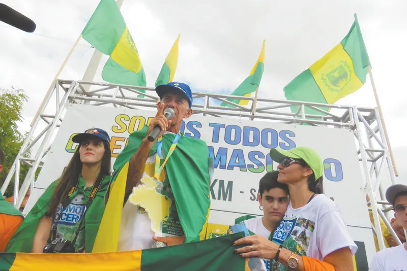 Santa Quitéria. Em clima de festa e de emoção, o maratonista Cícero Damasceno, 56, foi recebido, no sábado, nesta cidade, no Norte do Estado, após vencer o desafio de percorrer cerca de 2.800Km entre o Rio de Janeiro e o Ceará, em 50 dias. A expectativa dos moradores e parentes do corredor era grande. Alguns choraram, correram ao seu lado e queriam abraçá-lo.