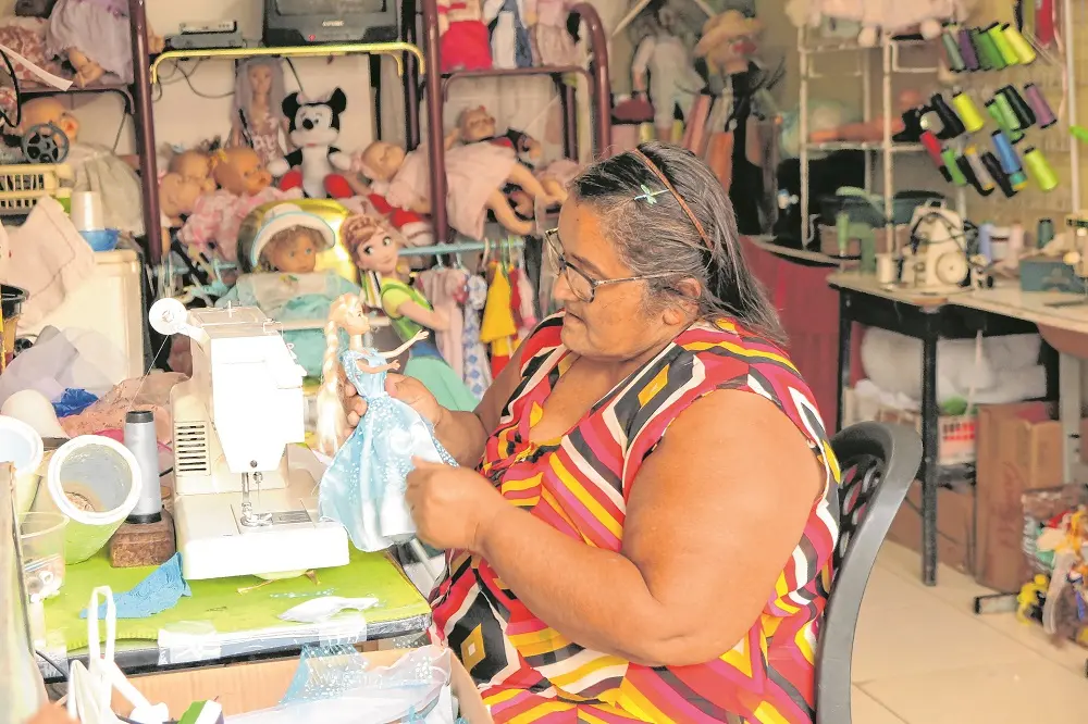 Há uma década, a rotina de Dalvani é intensa. O barulho da máquina de costura não para. Com muita concentração, ela verifica cada detalhe da encomenda que acabou de receber: três vestidos de festa, uma de bailarina e um biquíni. As roupas vestirão uma ‘Barbie’. “As pessoas dizem como querem e eu faço. Alguns trazem modelo ou tiram da internet”, explica.