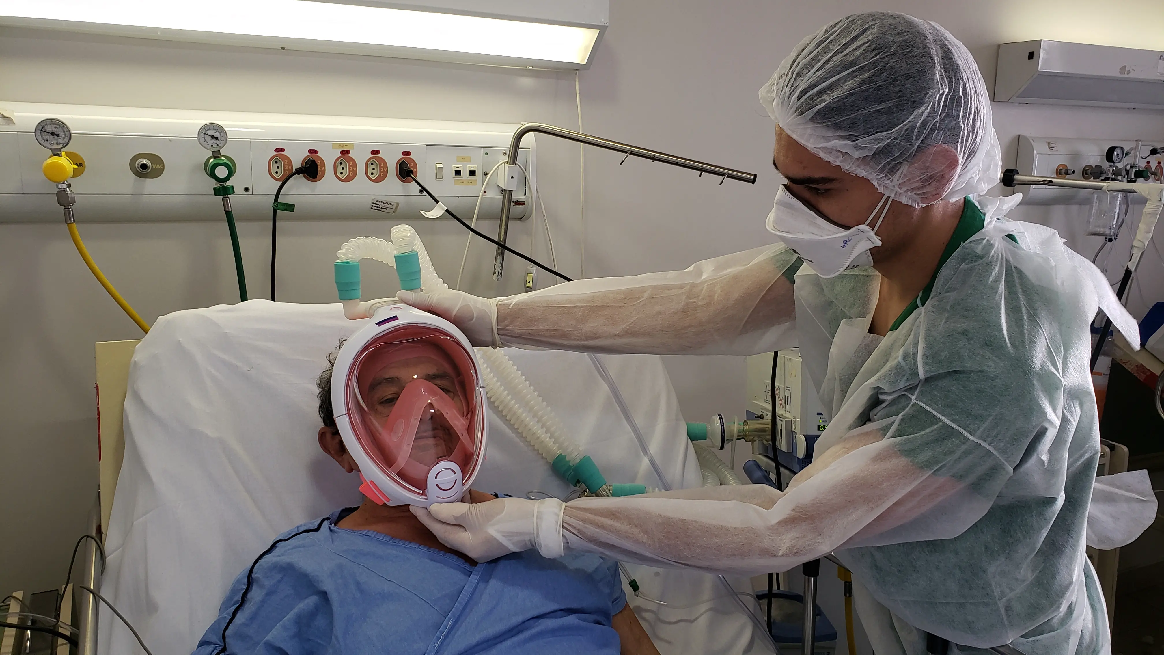 Com o objetivo de diminuir os impactos da Covid-19 em pacientes que evoluem para um quadro intermediário da doença, o Hospital Regional do Cariri (HRC), em Juazeiro do Norte, adotou uma “máscara de mergulho adaptada” para realizar a chamada ventilação não invasiva (VNI). O mecanismo alcançou eficácia de 91% entre os casos tratados em julho.