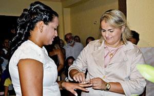 Habituada a anunciar cerimônias sociais, principalmente de formaturas e eventos culturais, Edna Letícia Uchôa confessou ter ficado surpresa ao ser procurada pelo casal para participar da celebração nupcial. Havia conhecido Marcia e Marlinda no estabelecimento comercial delas, do qual é cliente. Tratava-se de um convite muito especial. Para ela foi uma cerimônia muito interessante. "Quem sabe agora outras pessoas compreendam a importância de uma verdadeira união familiar", completa.