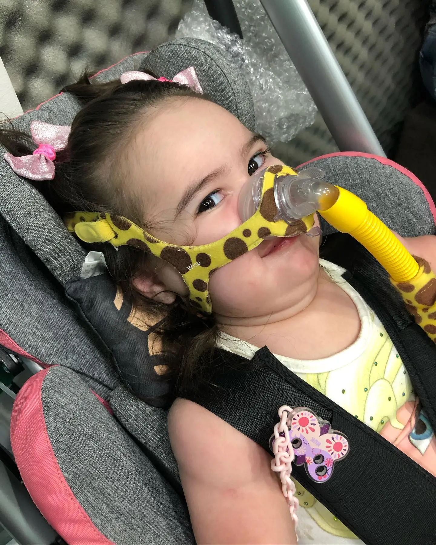 Clara chegou a ficar sete meses internada, no Hospital Albert Sabin, por conta de complicações. Após um quadro de melhora, os pais passaram a morar em Sobral, na região Norte, onde a pequena recebe tratamento por meio ‘Melhore Em Casa’, pelo Sistema Único de Saúde (SUS). Além de apoio para o oxigênio - já que a doença causa problemas respiratórios, recebe dieta adequada, equipamentos de proteção e, em dois dias da semana, fisioterapia em casa.