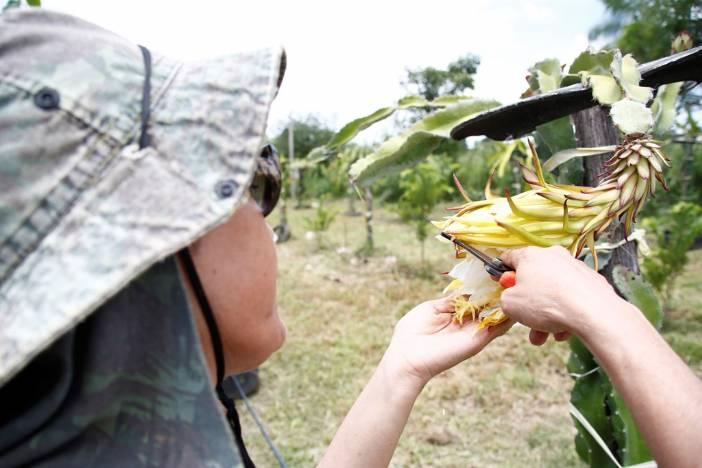 De forma pioneira, agricultora planta pitaia em Juazeiro do Norte