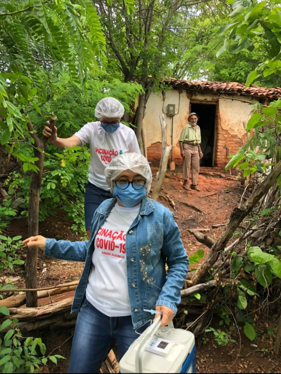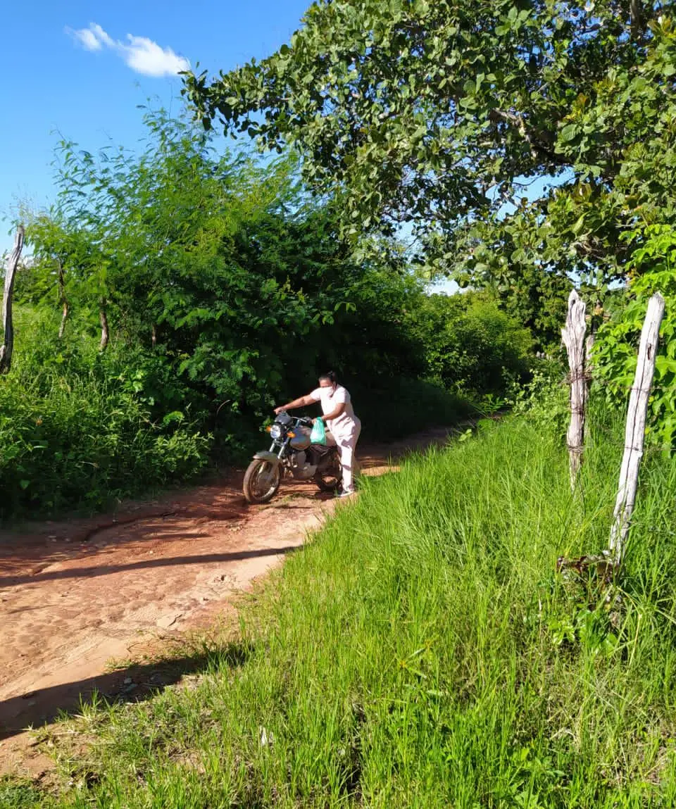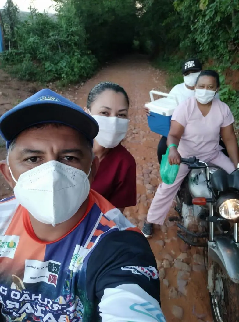 Enquanto Jessivânia pilotava a moto, a agente Cristiane Matias levava, no ombro, a caixa térmica com os tão esperados imunizantes. Mais à frente, as posições se invertiam, de modo que Cristiane, Jessivânia e Cícera Braz revessassem a árdua missão.