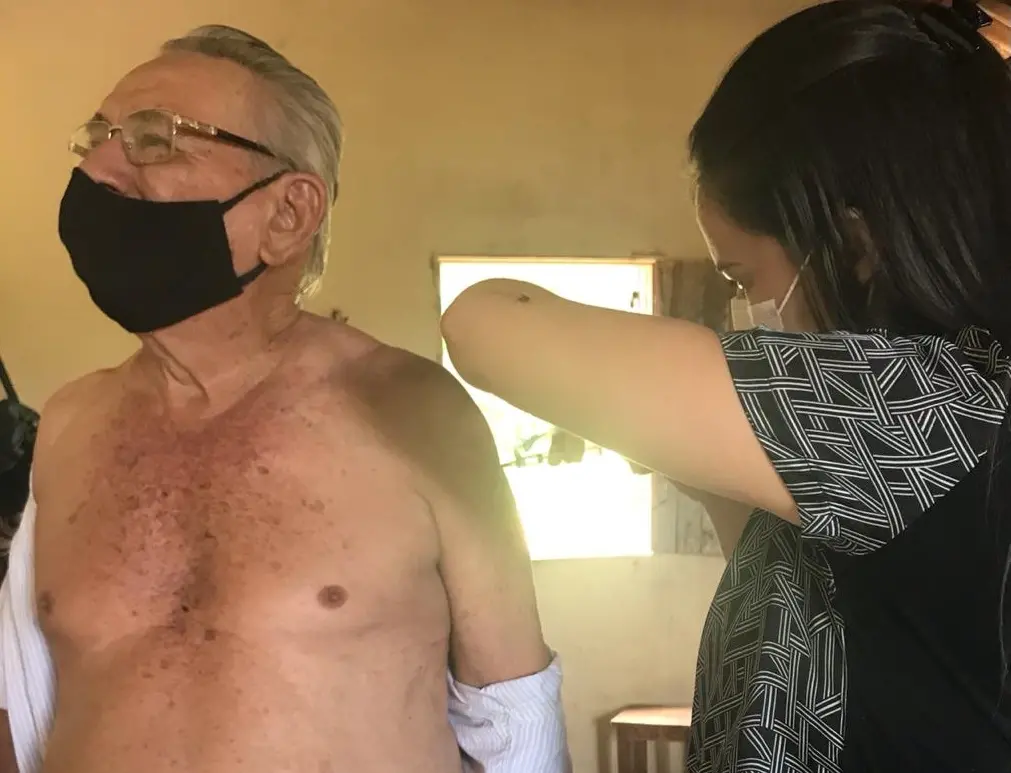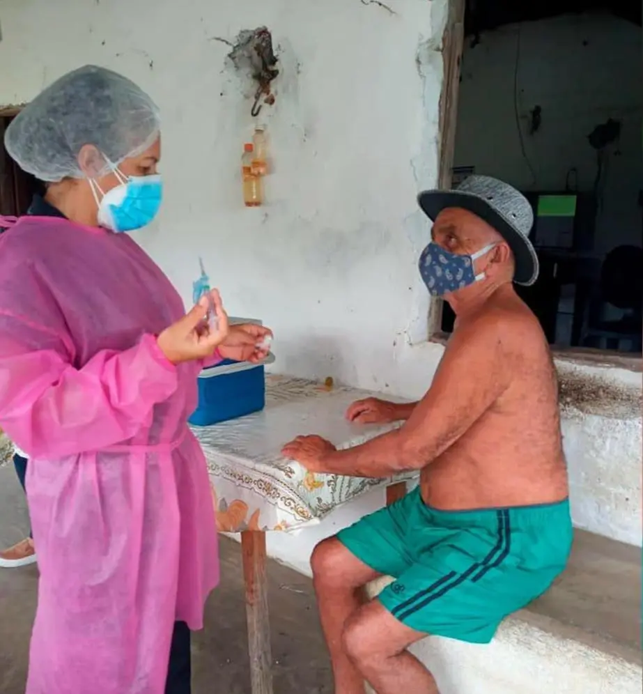 “A gente fez a vacinação dos idosos na casa de cada um e vacinou todos, nas suas localidades. Da segunda dose, até o momento, só tivemos uma recusa. A pessoa, de 75 anos, tomou a primeira e não quis a segunda. Fomos lá duas vezes, conversamos, explicamos, mas ela disse que não iria tomar”.