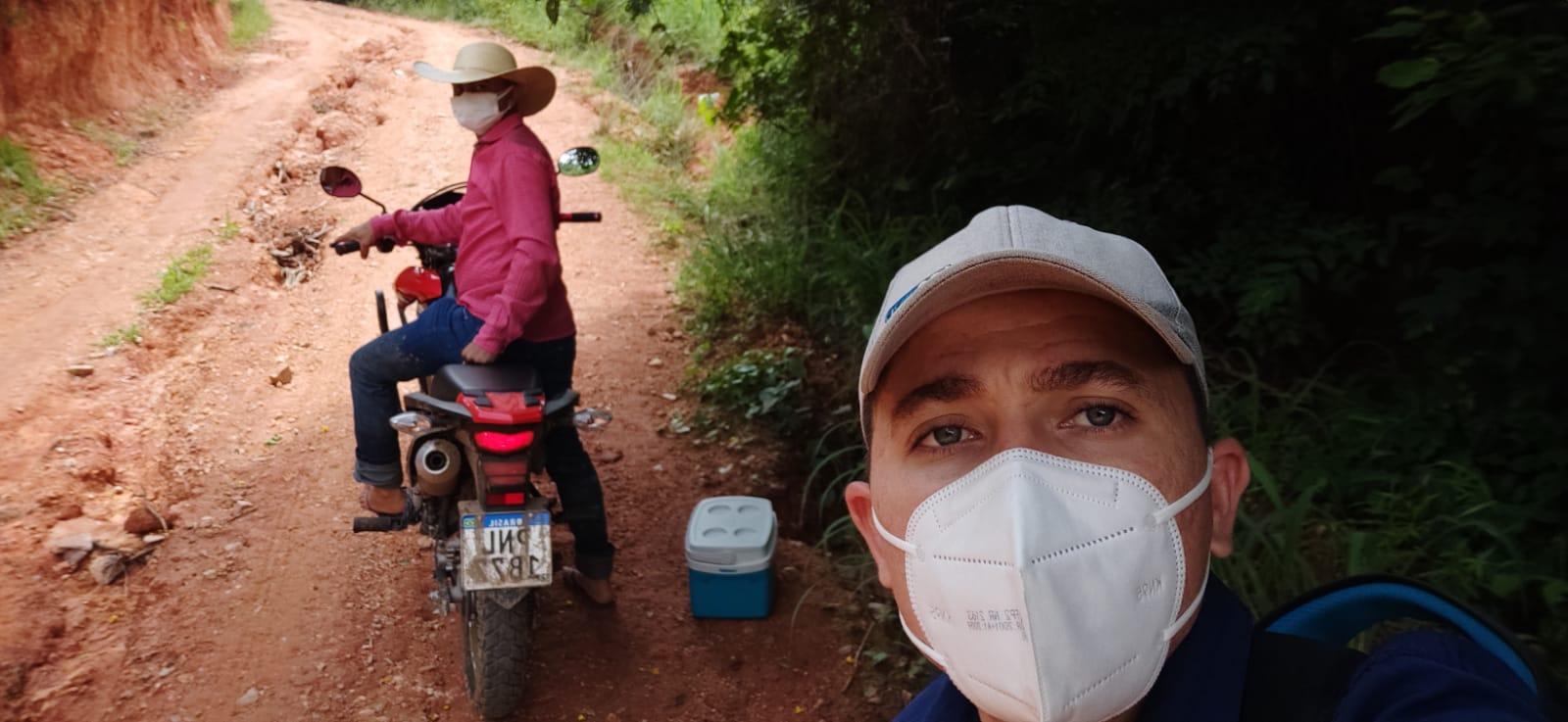 "Tem o caso de pessoas que não têm transporte e não podem se locomover. Aí a gente vai de moto. [Nesta terça-feira, 8] mesmo, vamos a um distrito a 20 quilômetros da sede fazer umas D2 e as D1 já de comorbidade".