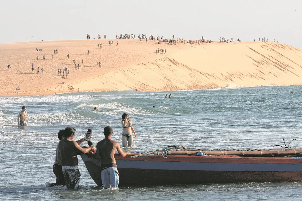 Cartão postal da praia mais badalada do Estado, a duna, que tinha 60 metros de altura nos anos 1980, agora está com apenas 30 metros. Especialistas alertam que, sem medidas de preservação, a duna pode se extinguir já na próxima década