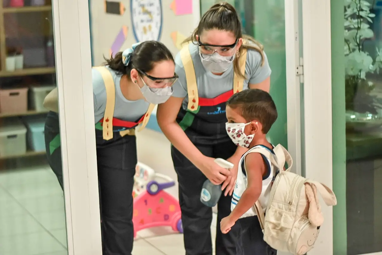 Conforme o decreto municipal, crianças até 3 anos não devem utilizar máscaras faciais. Para alunos com mais de três anos, professores e funcionários, é obrigatório utilizar máscaras e trocá-las a cada duas horas. Professores e cuidadores também devem utilizar face-shield.