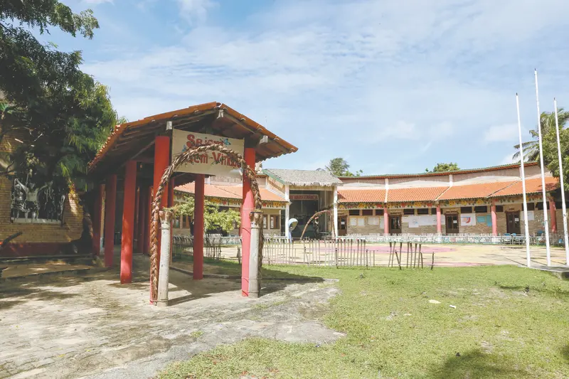 Com 96 alunos, o prédio da Maria Venâncio lembra uma imensa taba. De forma circular, as salas de aula têm nomes de danças que integram o torém, dança típica dos Tremembé.