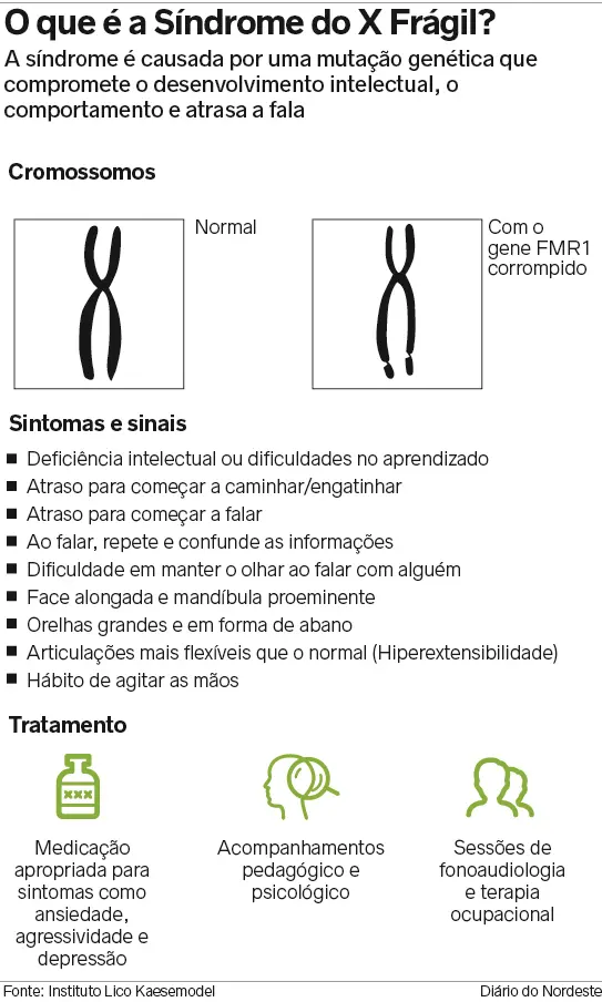 "O que gera a mutação é o aumento na quantidade de DNA nesse gene, ou seja, as repetições de Citosina-Guanina-Guanina (CGG). Em pessoas sem a síndrome, varia entre 6 e 39 repetições. A pré-mutação chega a 199, e quem é afetado pelo X Frágil chega a ter mais de 200", explica a gestora.