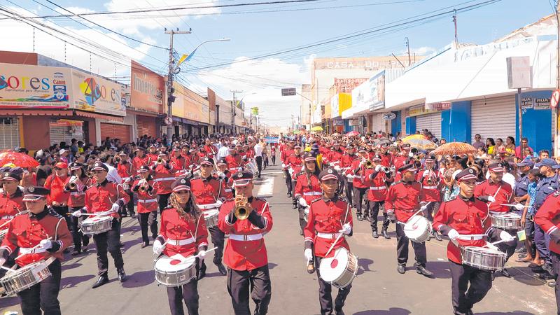 Juazeiro do Norte. Sob sol forte, um mar na cor vinho se forma na Rua São Pedro em um dos momentos mais esperados da manhã do 7 de setembro: a participação da Fanfarra Moreira de Sousa (Fanmosa), a mais antiga da cidade. Na última sexta-feira, 12 fanfarras participaram do desfile cívico-militar que celebra a Independência do Brasil, somando mais de 800 componentes. O número mostra que a tradição dos grupos tem se renovado e crescido a cada ano.