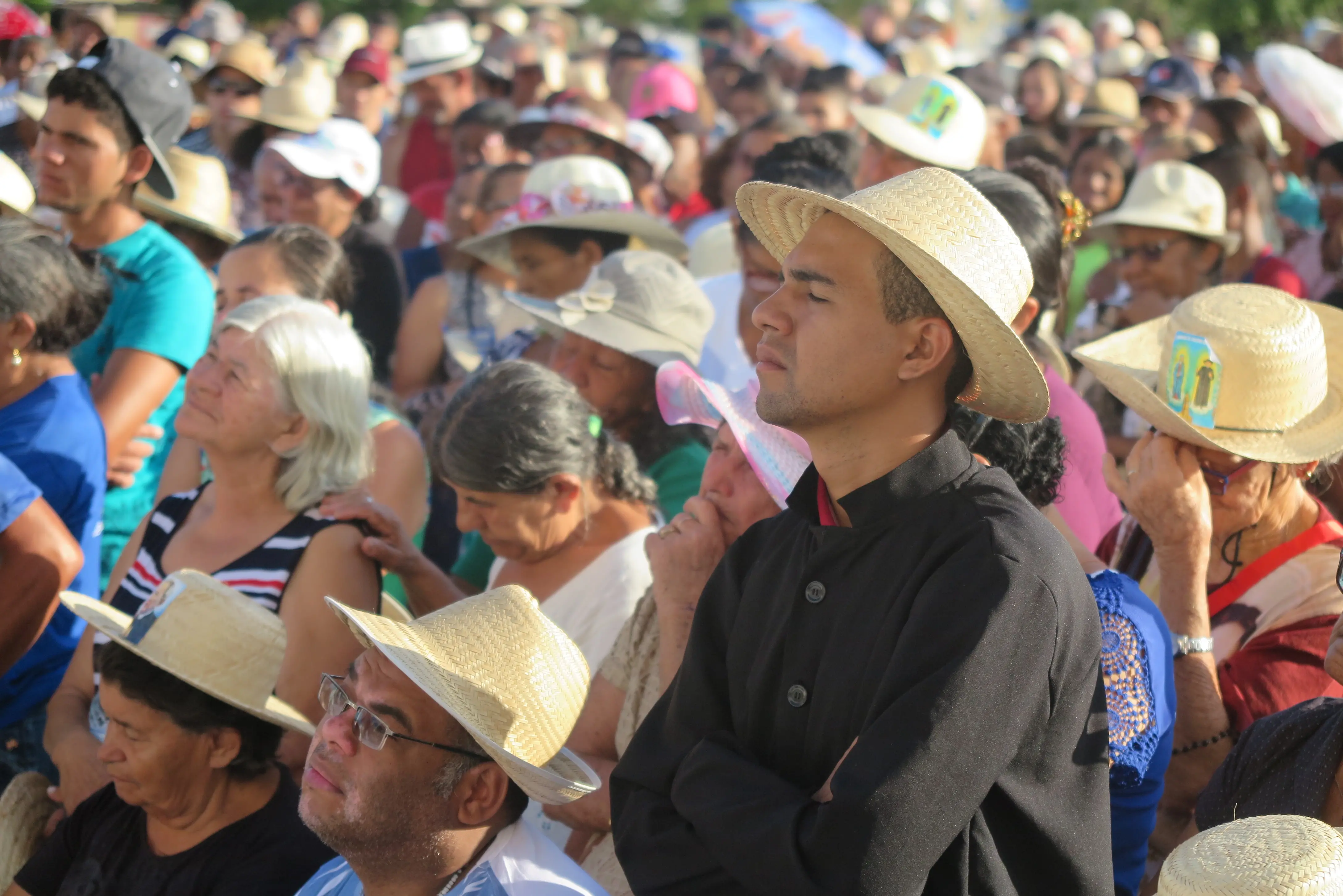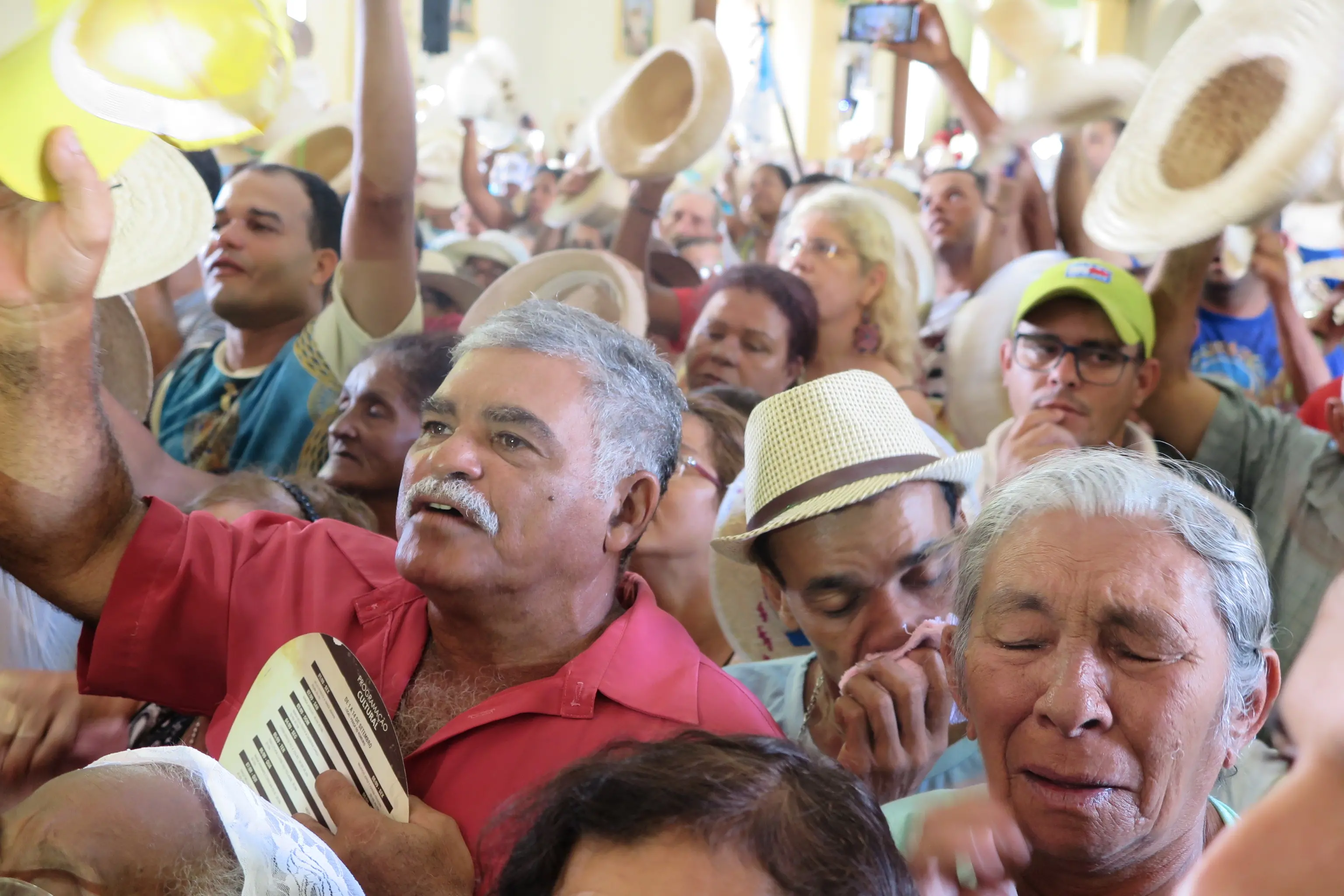 - Como era: Um dos momentos mais emocionantes das romarias, a despedida que acontece no interior da Basílica de Nossa Senhora das Dores, conta com presença do bispo Dom Gilberto. Neste momento, inclusive, é contabilizado os estados que mais enviaram devotos à Juazeiro do Norte. O interior do templo e a parte externa, ficam repletos de fiéis vestidos com seus tradicionais chapéus de palha. São estimados 4 mil pessoas no local.