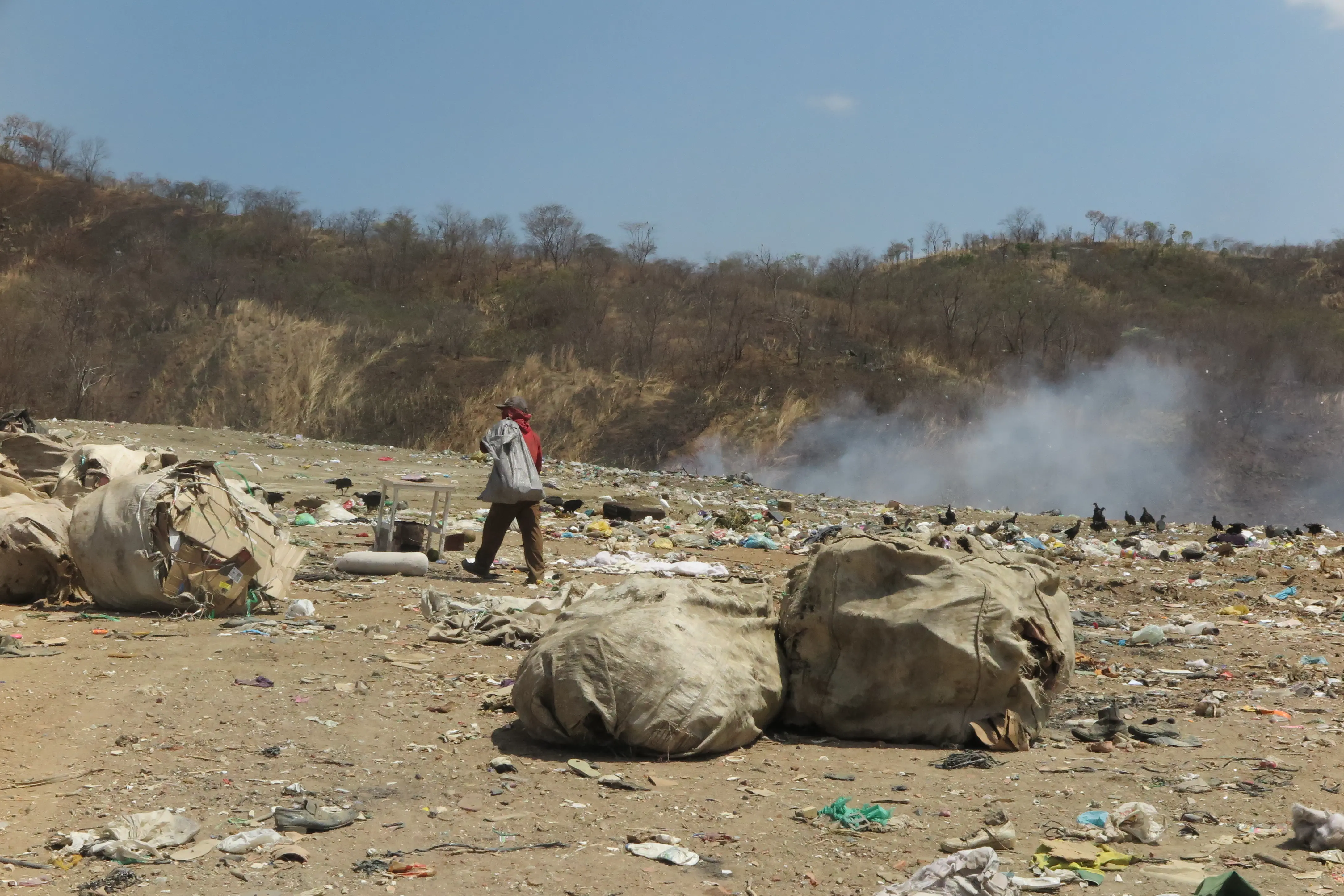 “Desde a semana passada está assim. Os olhos ficam ardendo. É muito difícil trabalhar”, desabafa o catador de materiais recicláveis Francisco de Assis Gonçalves. No bairro Vila Três Marias, ao lado do lixão, a situação fica mais delicada durante a noite.