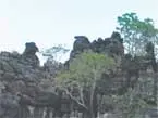 Pedras que lembram as figuras de um bode e uma galinha são vistas logo na entrada do Parque Furna dos Ossos