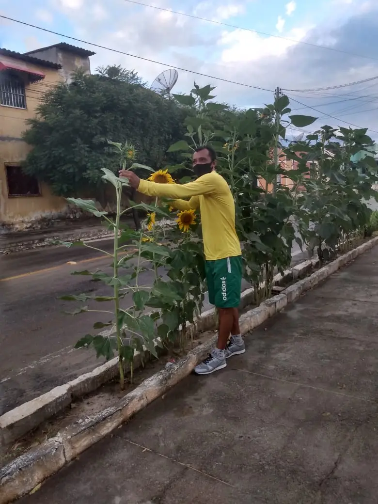 "Queria fazer algo marcante e original. Algo que ela pudesse sentir todo amor que tenho por ela". João então decide colorir a cidade com girassóis. Com o consentimento da companheira, ele começa, em março deste ano, a plantar girassóis pelas ruas de Quixeramobim.