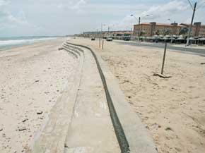 Através dessa técnica, quando a onda bate no bagwall a energia é dissipada e o avanço do mar não se transfere para outras regiões, como o que geralmente acontece com os espigões. E a técnica, já utilizada em praias dos Estados Unidos e Alagoas, ainda promove a engorda natural da praia, devolvendo a faixa de praia que servirá de área de lazer para os banhistas. Portanto, é natural que a escada de contenção tenha sido gradualmente coberta pela areia.