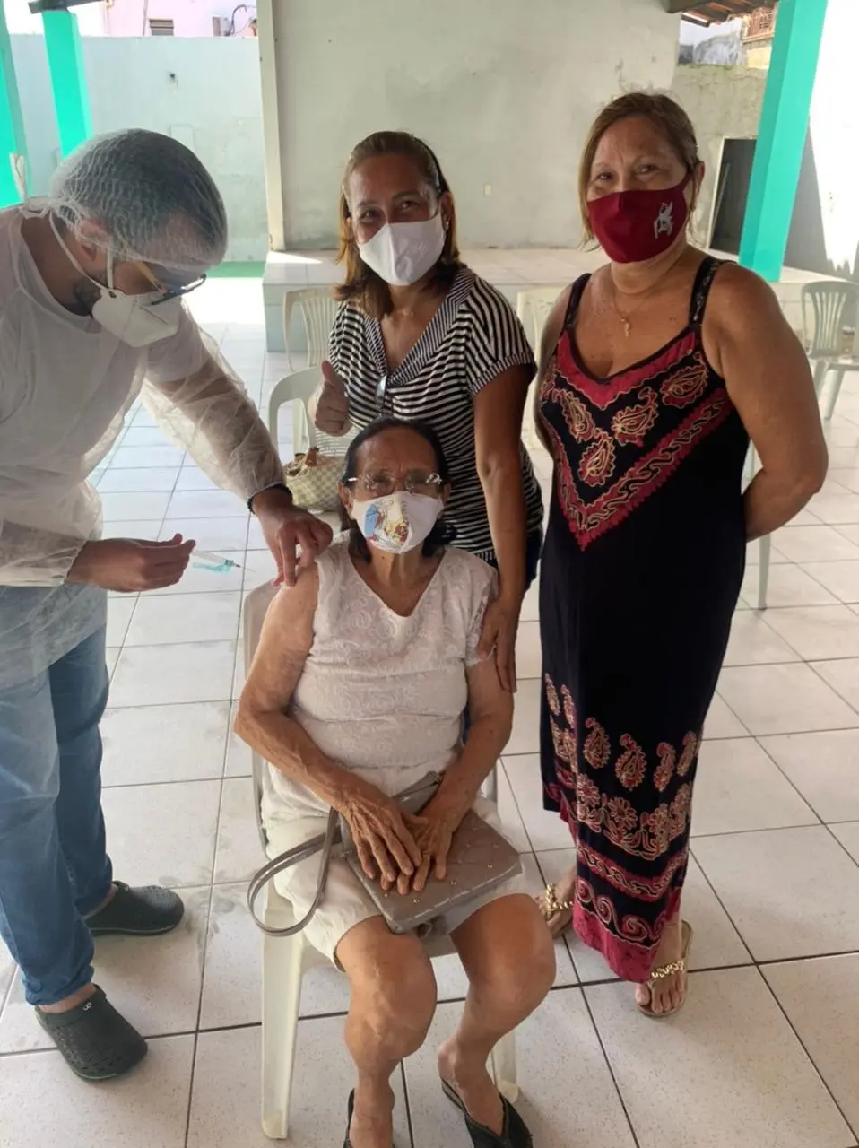 Isaura Moura Peixoto de Sousa recebeu a primeira dose da vacina AstraZeneca / Oxford no dia 27 de janeiro, em sua própria residência.