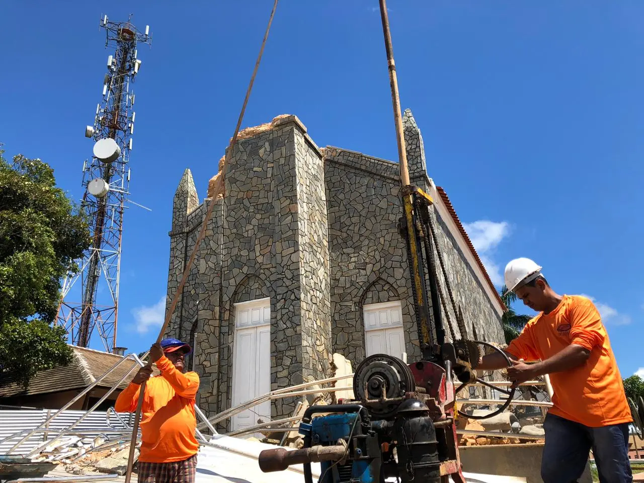 As obras de reconstrução da Igreja do Céu, ponto turístico de Viçosa do Ceará, na chapada da Ibiapaba, iniciaram hoje (1º). A escultura do Cristo Redentor, que fica no topo da Igreja, e a torre que sustentava a estátua foram as mais atingidas e desabaram no último dia 31 de março. O templo já apresentava falhas na estrutura, detectadas em laudo feito em outubro de 2018.