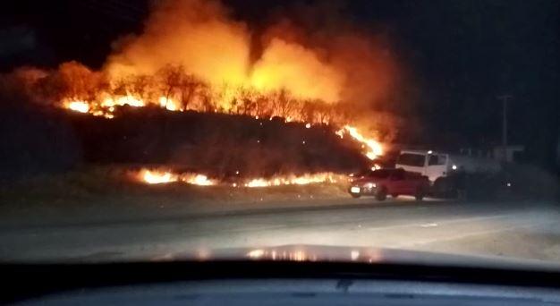 Um incêndio atingiu área de vegetação no município de Orós, no sertão cearense, na noite desta quarta-feira. Os bombeiros estiveram no local e conseguiram controlar o fogo ainda durante a noite. O fogo consumiu uma área próximo a um posto de combustível.