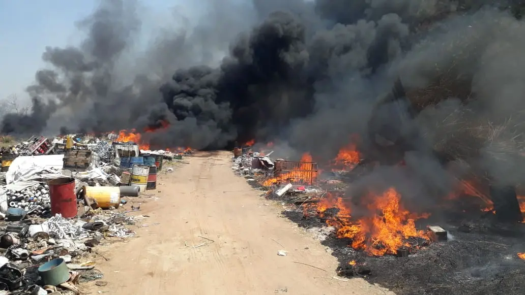 Incêndio começa em matagal e atinge depósito de reciclagem em Sobral