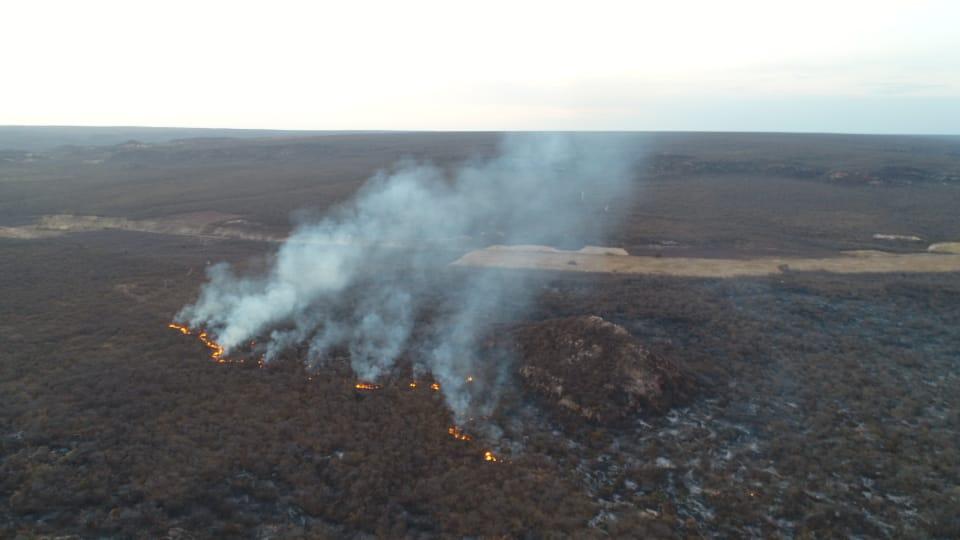 Fogo castiga área da divisa entre o Ceará e Piauí há quatro dias. Equipes do Corpo de Bombeiros dos dois estados atuam no controle das chamas, mas deverá se estender por pelo menos dois dias