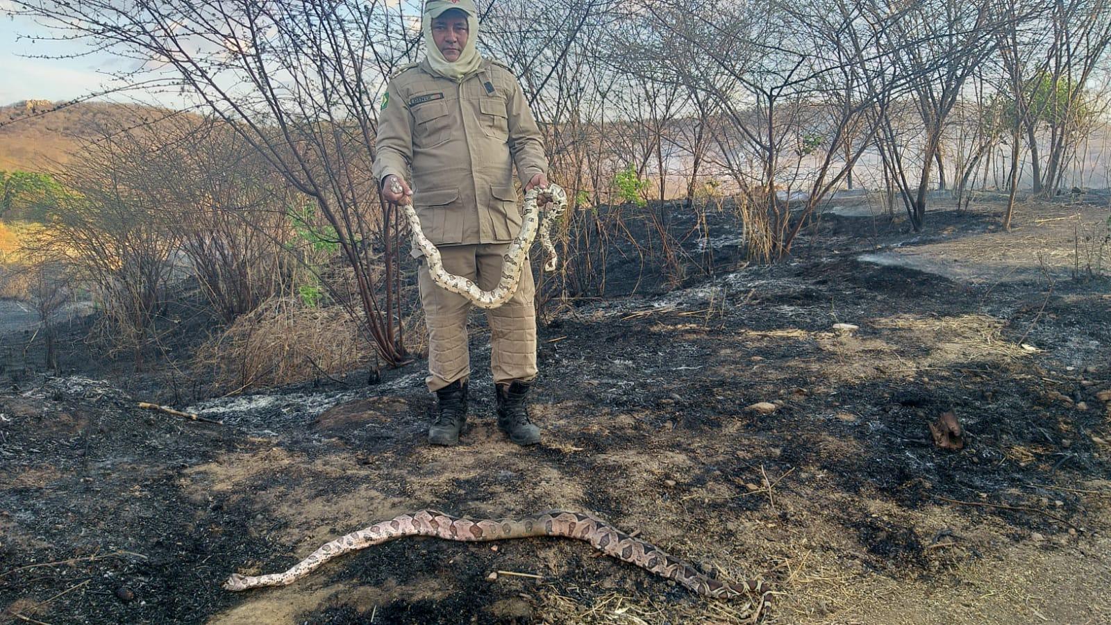 Além de queimar a vegetação, o incêndio mata animais silvestres e empobrece o solo. Pelo menos três cobras morreram e outra ficou queimada, lamentou o subtenente do Corpo de Bombeiros de Iguatu, Francisco José Diniz. "Outros bichos nativos também morreram queimados".