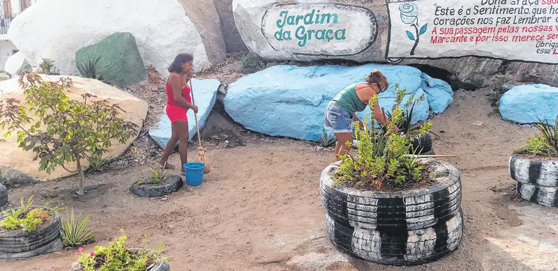 A manutenção dos jardins fica a cargo dos moradores. A dona de casa Francinir Rodrigues conta que a própria comunidade arrecada o dinheiro para comprar as mudas e a tinta para pintura dos pneus reciclados. "Entendemos serem necessárias essas ações sociais para transformar essa realidade do lixo na nossa cidade. Acredito que dando exemplo, as pessoas vão se sensibilizar e a tendência é de mudança na mentalidade".
