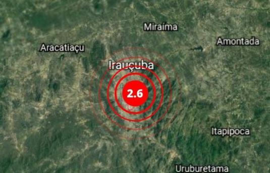 O município de Irauçuba, no Interior do Ceará, registrou um tremor de terra de 2.6 mR (sigla que indica a escala de magnitude no Brasil) na manhã desta terça-feira (3).