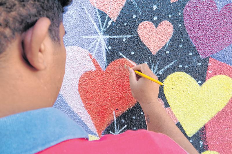 Como um professor, o adolescente Gustavo*, de 16 anos, explica o grafite feito coletivamente pelos jovens que cumprem medidas socioeducativas no Centro José Bezerra de Menezes, em Juazeiro do Norte. "Os pássaros significam a liberdade. Estas duas mãos são duas pessoas, uma ajudando o outra a subir na vida. O regador é pra regar a vida de uma pessoa que ainda vai nascer. O barco mostra que, mesmo na tempestade, ainda existe fé", descreve um a um, apontando com um dedo para as ilustrações.