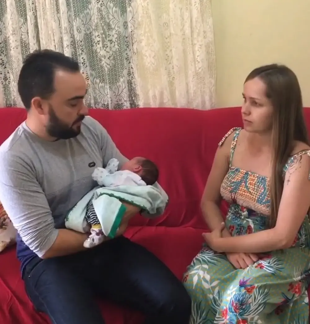 Nesse momento, Gisele estava ajoelhada por não aguentar as dores, conforme relata. “Eu falei assim: 'vai nascer, vai nascer aqui no chão mesmo, é'? Ele falou: 'calma, não vai nascer agora não'. Só foi o tempo dele fechar a boca, o neném caiu no chão”, diz a mãe. O bebê nasceu às 20h35.