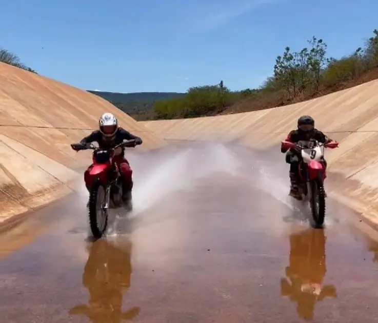 Motociclistas são flagrados pilotando em canal por onde passarão as águas da Transposição, no Cariri; veja vídeo