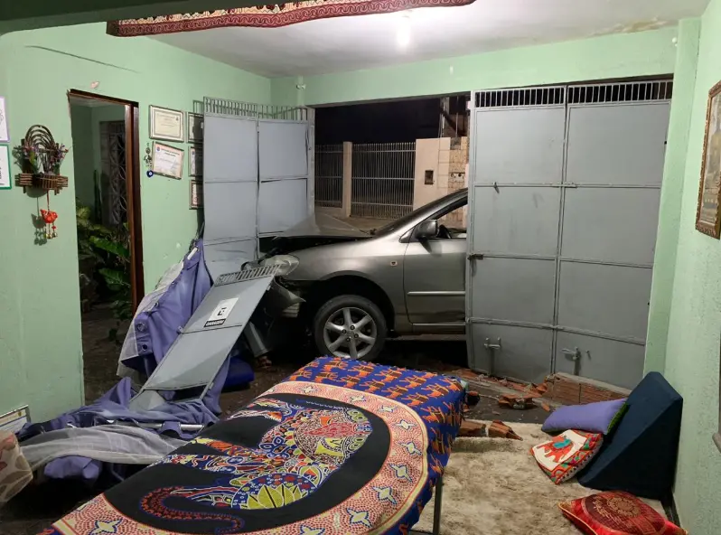 Um motorista perdeu o controle do carro e invadiu uma casa onde funciona um espaço terapêutico na rua Senador Catunda, no Centro de Guaraciaba do Norte, a 300 km de Fortaleza, na madrugada desta segunda-feira (20).