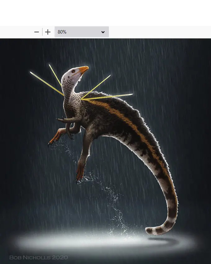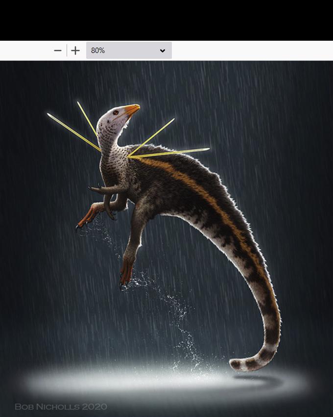 Estas estruturas incluem monofilamentos delgados associados à base do pescoço, aumentando em comprimento ao longo da região torácica dorsal, onde formam uma juba, bem como um par de estruturas alongadas em forma de fita, provavelmente emergindo do ombro. “(Estas características) até agora desconhecidas em qualquer outro dinossauro”, aponta o estudo.