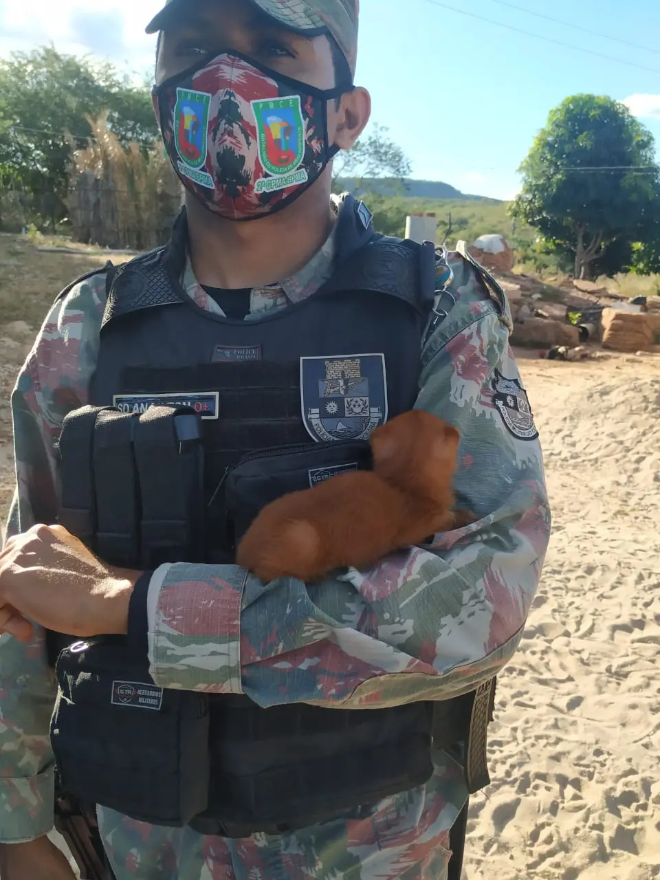 O animal tem entre 20 e 25 dias e está sob os cuidados do Instituto Brasileiro do Meio Ambiente e dos Recursos Naturais Renováveis (Ibama). O filhote foi encontrado pelo agricultor João Leandro enquanto realizava um plantio de milho em sua residência, no Sítio Morcego, Distrito de Catarina. Os policiais militares SD PM Joelmir e SD PM Anailton acompanharam a ocorrência.
