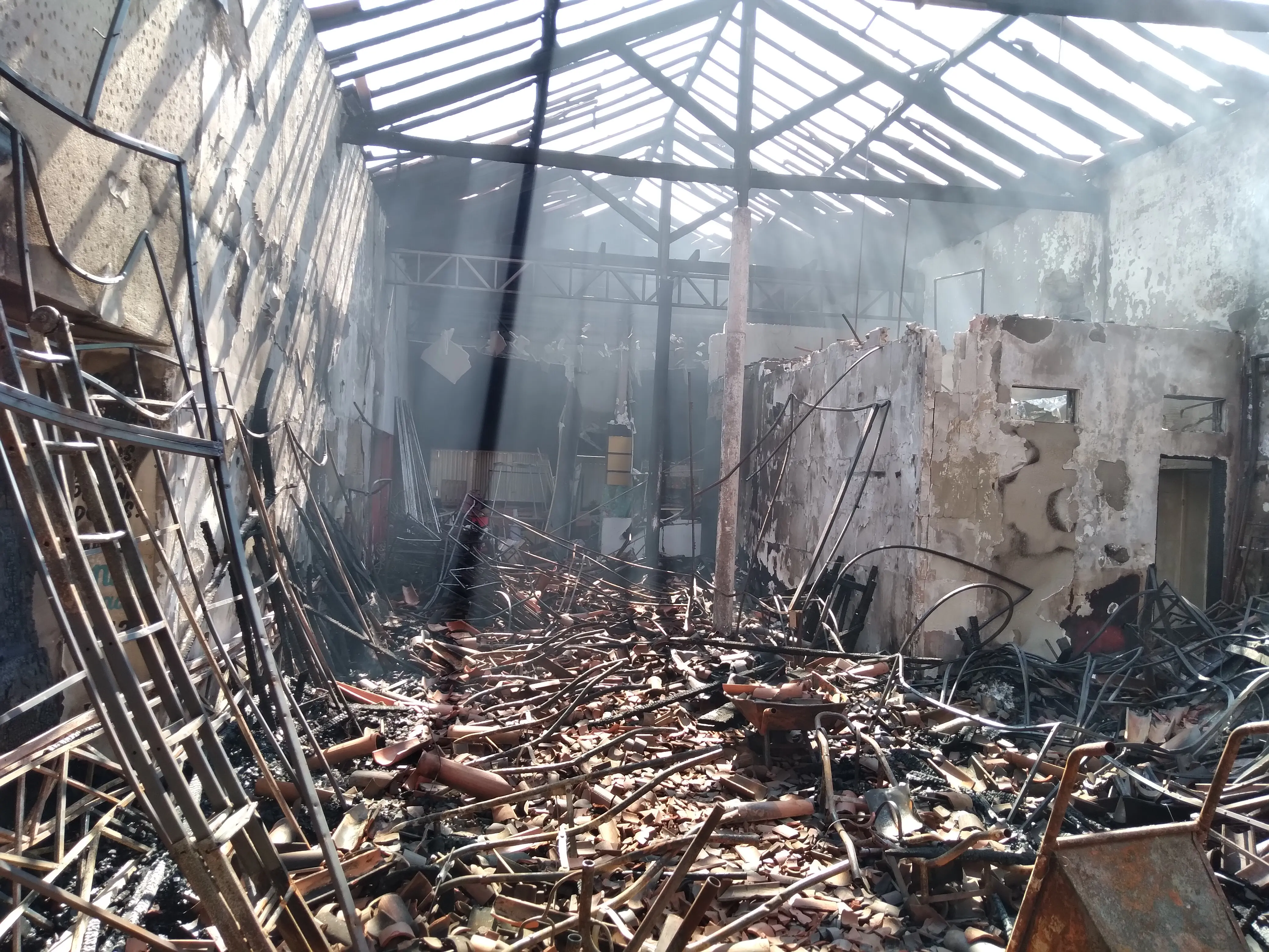 Ainda de acordo com comandante dos Bombeiros, a estrutura do prédio ficou abalada e o telhado e madeiramento parcialmente destruído.